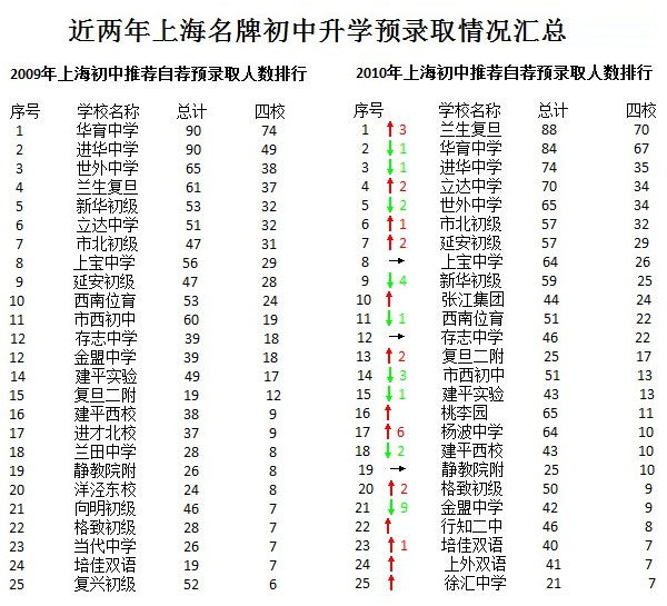 以上这些学校再加上有内部升学途径的上外附中,上海实验学校,浦东外国语学校等,以及最近两年新成立的还未有毕业生的嘉定新城初中,浦东交中初级,浦东上海中学东校等,基本上囊括了全上海最优秀的初级中学了。
