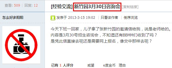 上海奥数网讯2013年3月16日,据e友消息:某小学的老师发了新竹园的邀请信,内容是3月30号招生咨询会。今年新竹园疑似政策有所变动,目前官方网站上还有相关报名信息,具体情况还没有得到官方证实。 >>>相关讨论:新竹园3月 30日咨询会