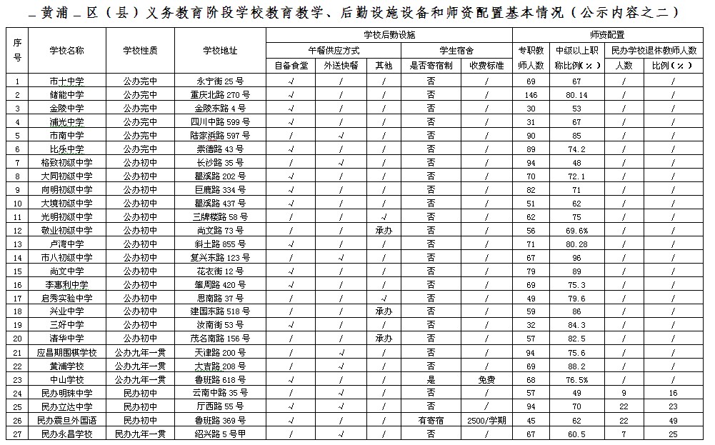 黄浦区(县)义务教育阶段学校教育教学