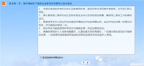 第三步,阅读报名协议,并打“√”,点击“下一步”;