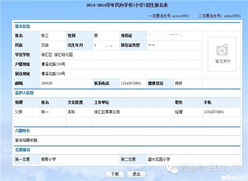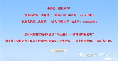 第七步,报名成功界面。您可以预览报名表,报名幼儿园入学的还可以下载报名表;