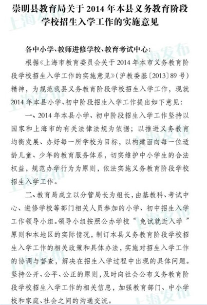 2014年上海崇明县义务教育阶段学校招生划区范围