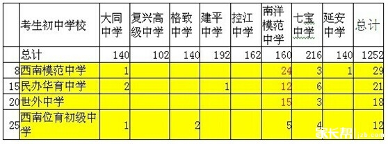 而徐汇区8校的预录取则偏向性明显南洋模范中学,而西南模范原本为南洋模范一个初中分部,所以亲属关系可见一斑。