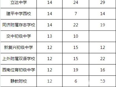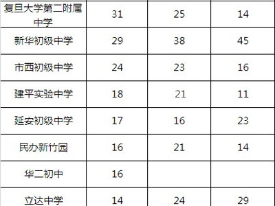 在上海小升初家长心目中的“金刚四校”,分别是上中、华二、复附和交附,能考到有这四所学校预录取名额多的初中学校上学,之后的中考升学也是事半功倍的,那么就先来看看近三年四校预录取前20名的初中学校。
