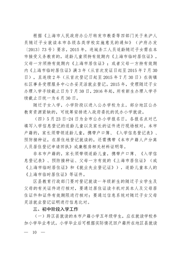 2015年上海青浦区义务教育阶段学校招生入学工作实施意见(10)
