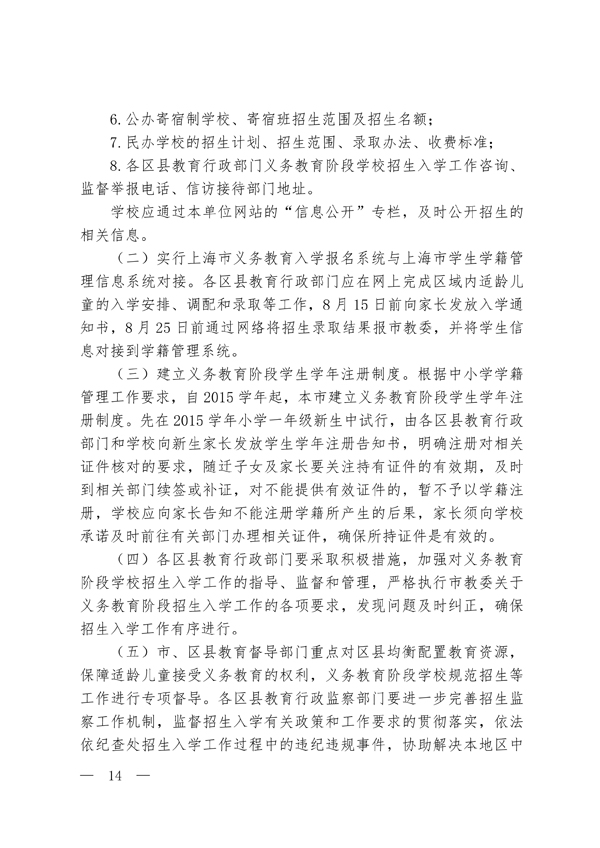 2015年上海青浦区义务教育阶段学校招生入学工作实施意见(14)