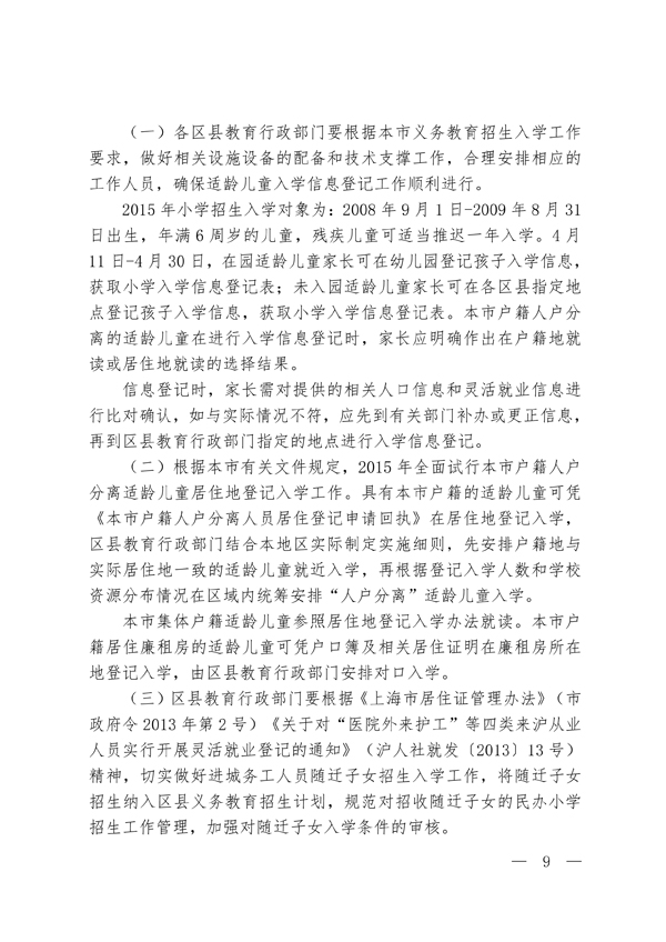 2015年上海青浦区义务教育阶段学校招生入学工作实施意见(9)
