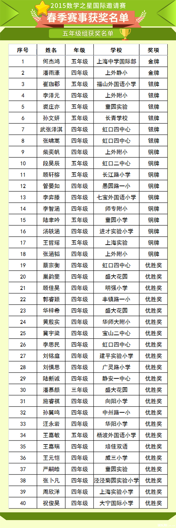 2015数学之星获奖名单(五--八年级)