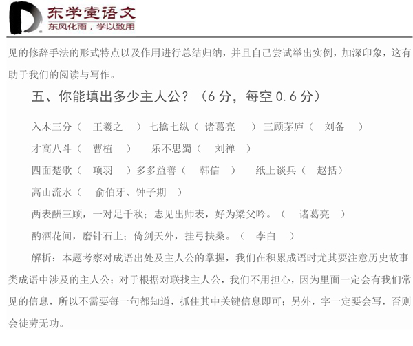 【点击下载】上海小升初语文考试冲刺训练(一)答案
