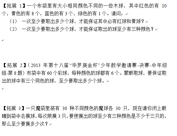 2015暑假上海小升初五年级抽屉原理练习题 上海奥数网 2015-07-07 14:34:39 2015年上海小升初完美收官,今年的暑假将怎么衔接初一学习呢?那么下面看看下文的2015年暑假五年级的拓展练习题吧。下文先看第四讲——抽屉原理进阶。 【点击下载完整版第四讲试题】
