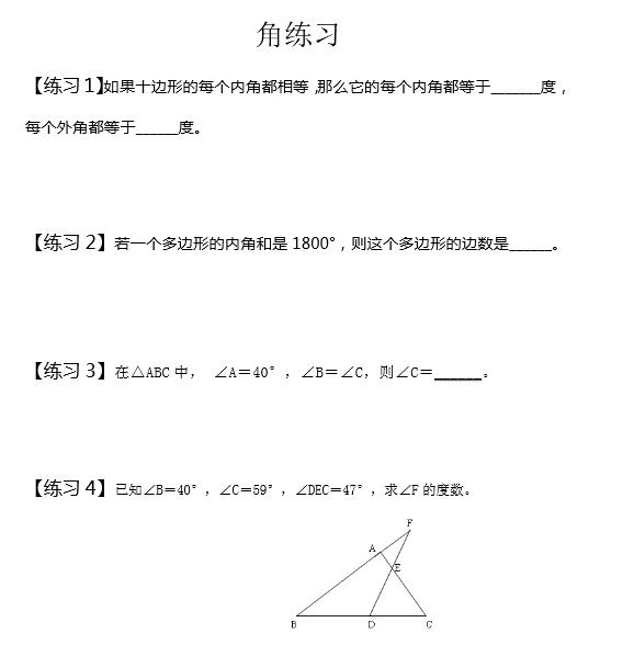 首先,热烈欢迎各位同学进入四年级的学习当中,这学习和上海小升初升学的压力就进一步来临了,尤其是目标为杯赛和四校的牛娃们,一定会早做准备 吧,即使是普娃,笨鸟先飞也是必要的,因此在四年级一定要打好基础,为杯赛和上海小升初蓄力以待!下面就开始10天暑假专题集训——第二天角的练习题和答案。