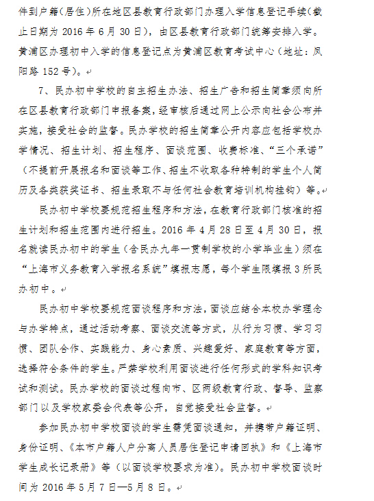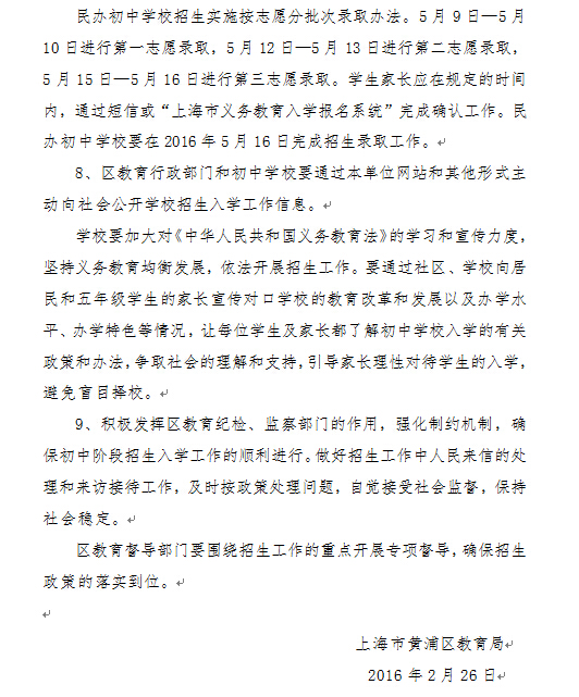 2016年上海黄浦区小升初招生工作实施意见公布,详情如下。
