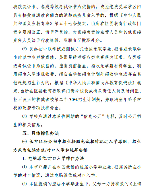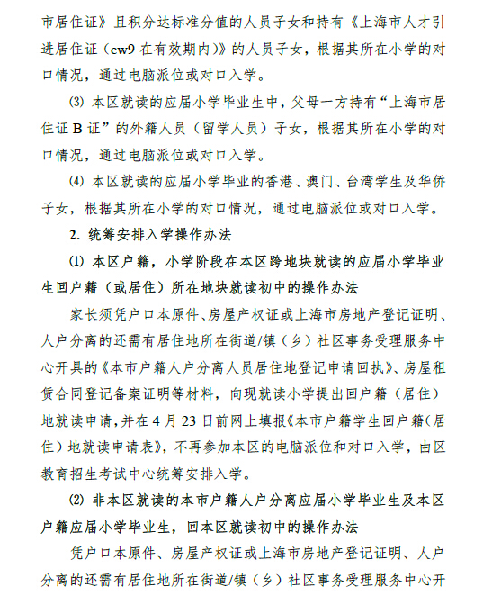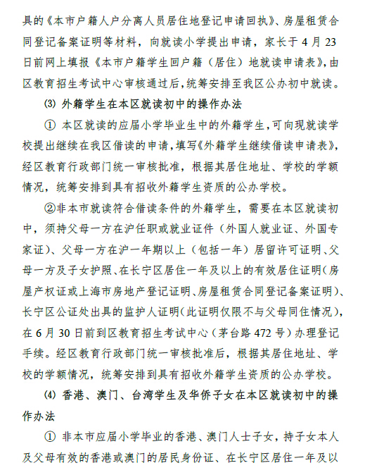 上海长宁区2016年小升初招生工作实施意见(2)