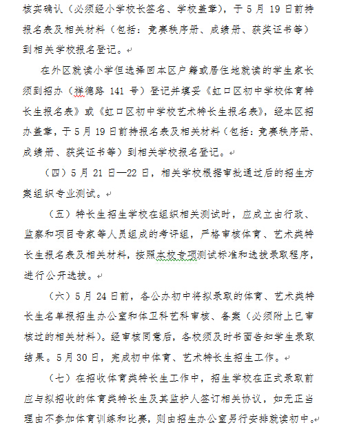 上海虹口区2016年小升初招生工作实施意见(3) 上海奥数网 2016-03-01 12:23:28 编辑推荐: 2016上海小升初择校面向全市招生的民办校 2016年上海各区小升初政策查询官网地址 2016年上海出台五年一户政策限制学区房 2016上海各区小升初招生政策重点解读 2016年上海各区县小升初招生政策汇总 首页 上一页 下一页 尾页