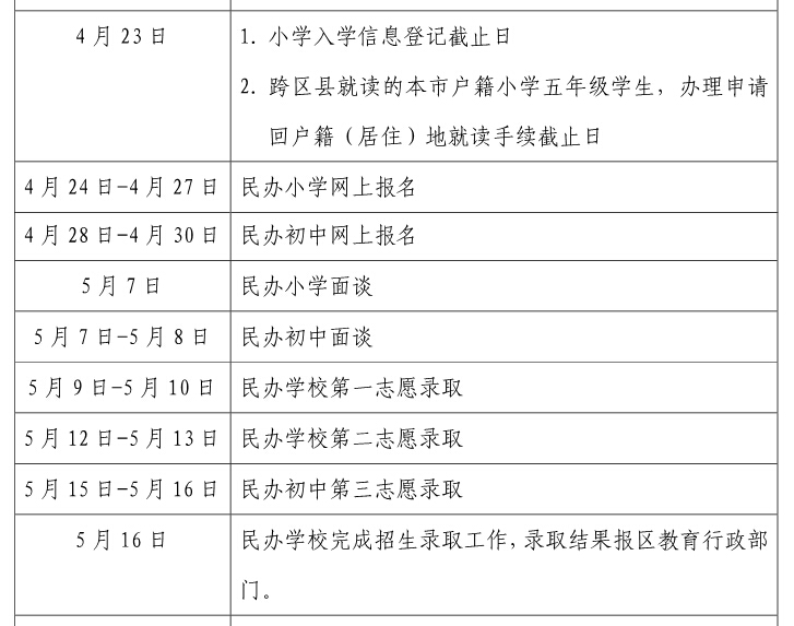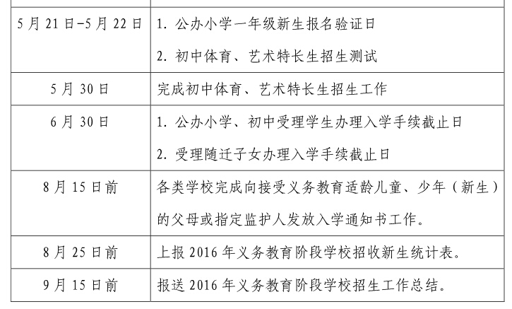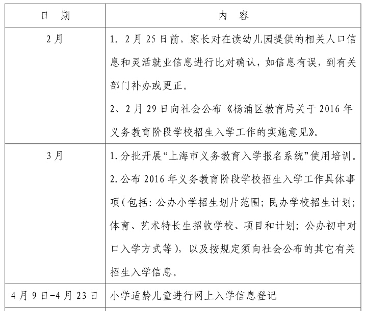 附:2016年杨浦区义务教育阶段学校招生入学工作日程安排