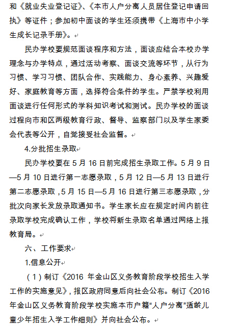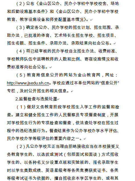 上海金山区2016年小升初招生工作实施意见(3)