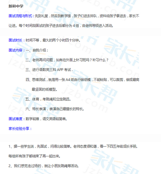 2016年上海民办初中的面谈结束了,下面上海家长帮小编“蓉蓉兔仔”整理了上海各民办初中2016年小升初面谈流程、真题和家长经验,供上海小升初后来者参考。首先来看看上海新和中学的2016小升初面谈真题、流程和家长经验。