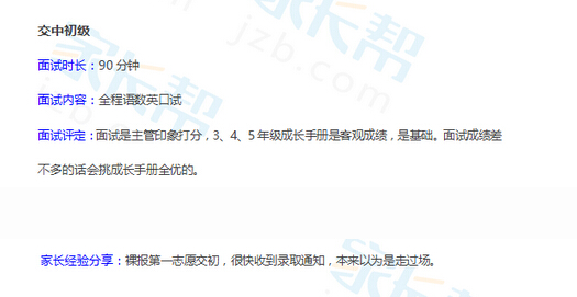 上海交中初级2016小升初面谈详情