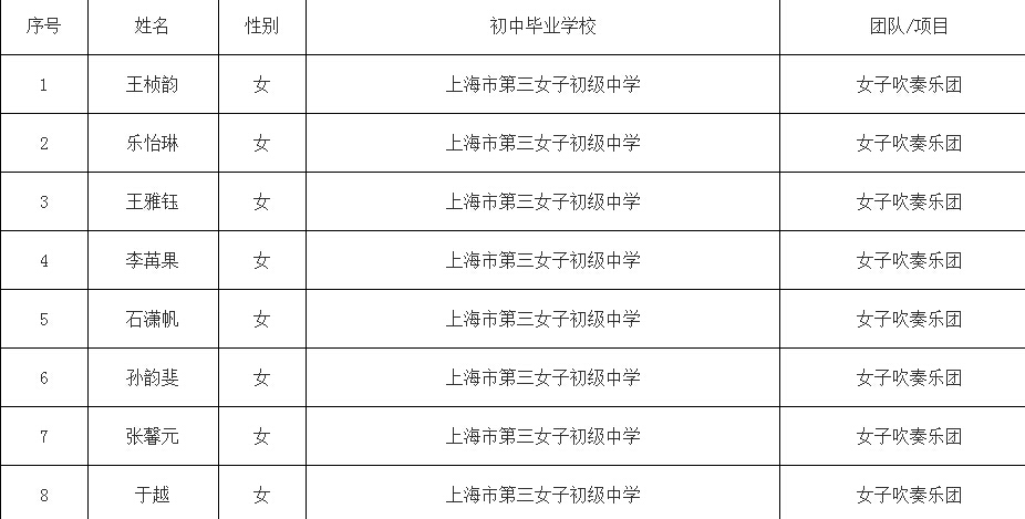 上海长宁区市三女中2016小升初艺体特长生录取名单(市三女初)公布,详情如下。