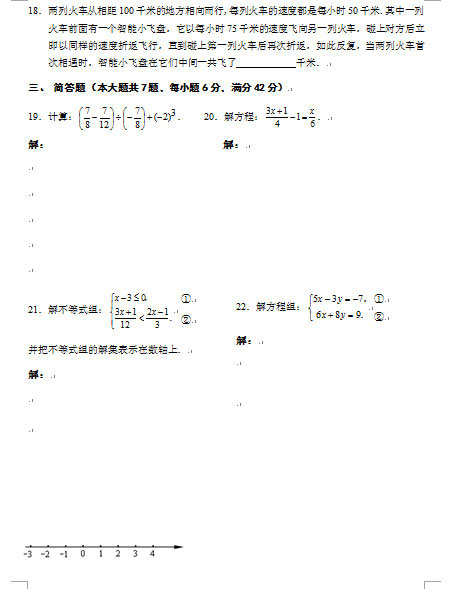 上海浦东新区预初年级往届数学试卷(六)(2)