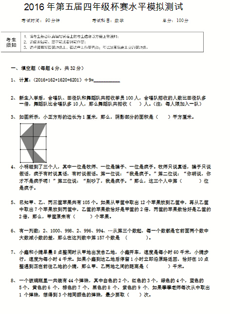下班年,上海学生的杯赛考试季来了,为了帮助上海考生在赛前了解自己的杯赛水平,学而思进行了四年级杯赛水平模拟测试,下面小编将四年级杯赛水平模拟测试数学试题及解析分享给上海四年级的考生们,一起来检验自己的杯赛水平吧。