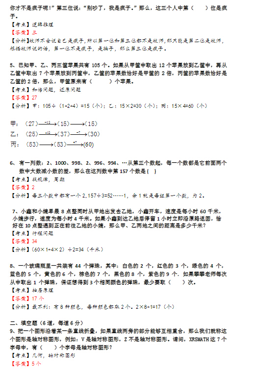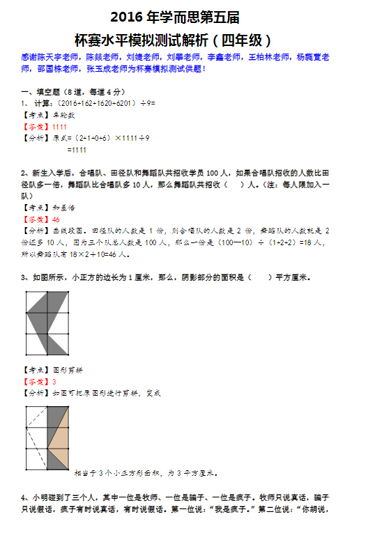 上海四年级杯赛水平模拟测试数学试题及解析(2)