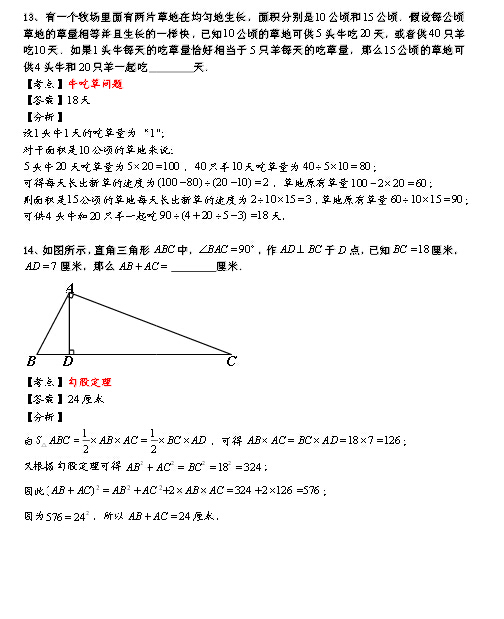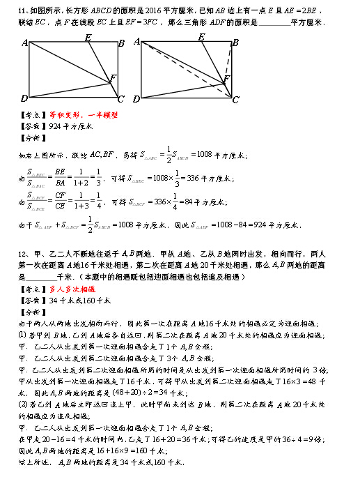 上海五年级杯赛水平模拟测试数学试题及解析(3)