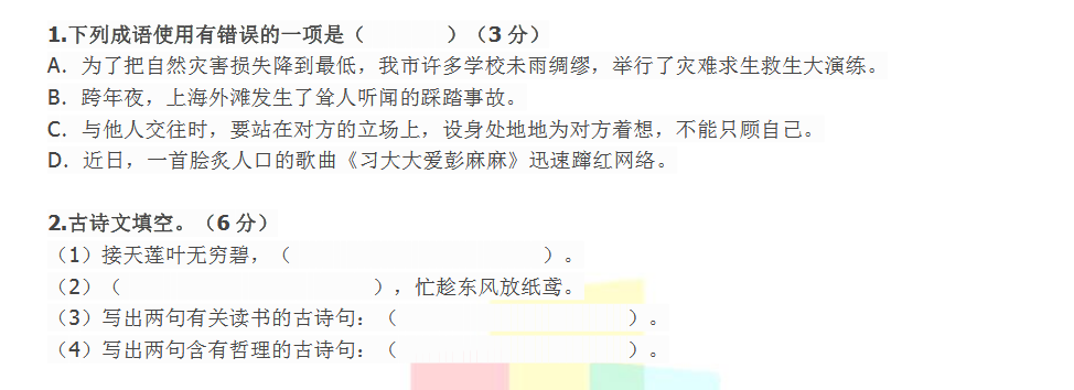 2018上学期上海六年级语文每日一练(十四)