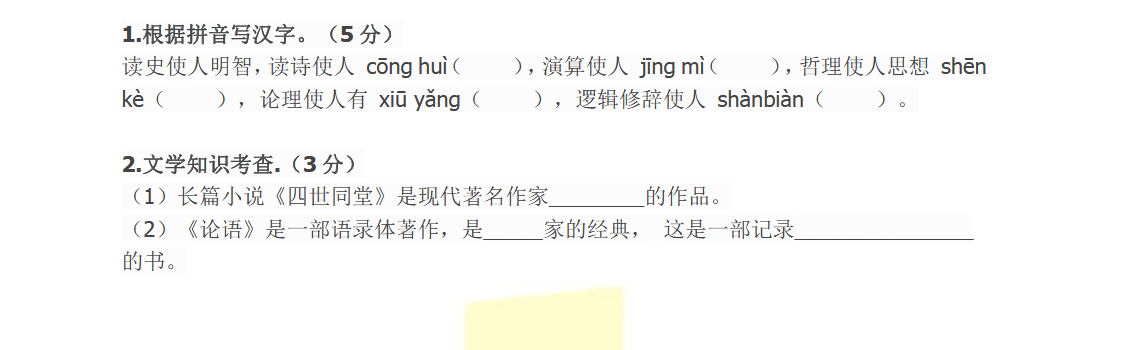 2018上学期上海六年级语文每日一练(十五)