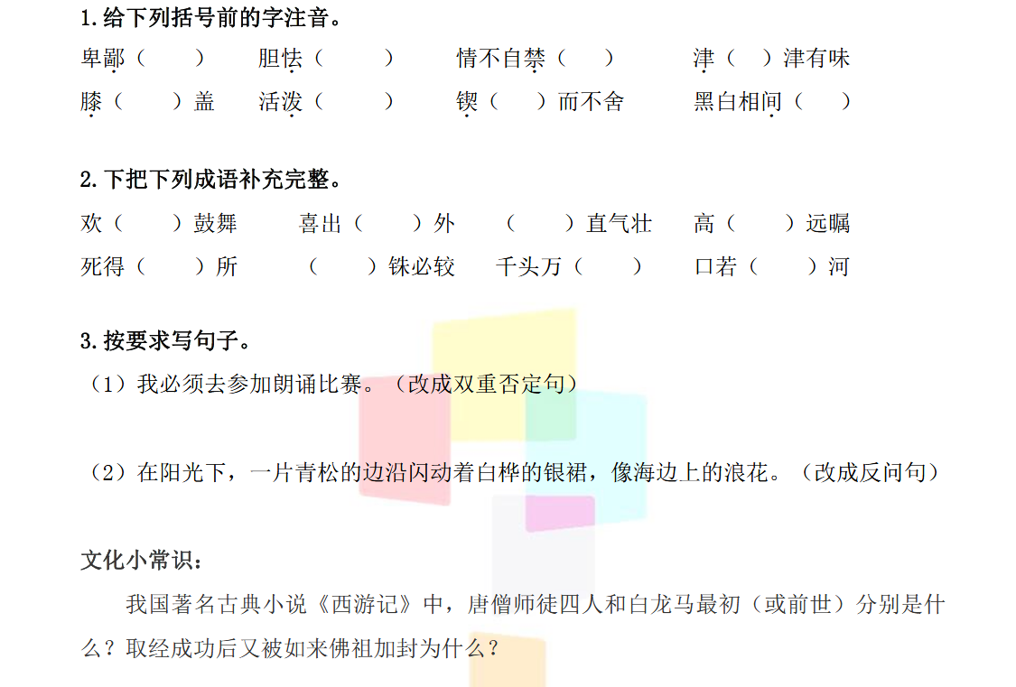 相关推荐 小学1-6年级作文素材大全全国小学升初中语数英三科试题汇总小学1-6年级数学天天练小学1-6年级奥数类型例题讲解整理汇总小学1-6年级奥数练习题整理汇总小学1-6年级奥数知识点汇总小学1-6年级语数英教案汇总小学语数英试题资料大全小学1-6年级语数英期末试题整理汇总小学1-6年级语数英期中试题整理汇总小学1-6年级语数英期中试题整理汇总 点击查看更多
