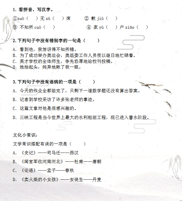 2018上学期上海六年级语文每日一练(五十)