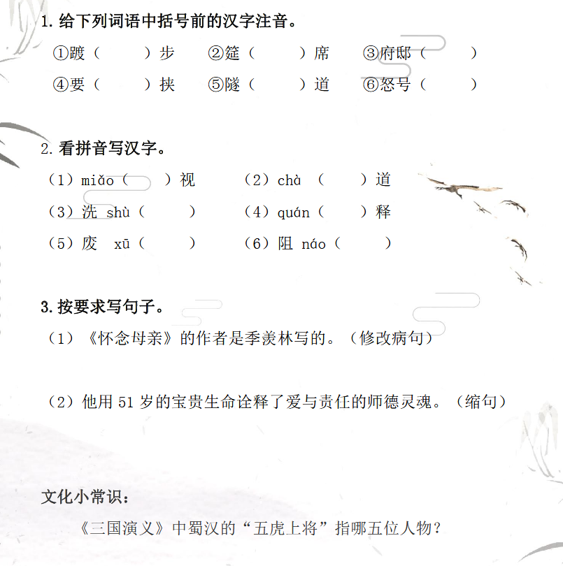 相关推荐 小学1-6年级作文素材大全全国小学升初中语数英三科试题汇总小学1-6年级数学天天练小学1-6年级奥数类型例题讲解整理汇总小学1-6年级奥数练习题整理汇总小学1-6年级奥数知识点汇总小学1-6年级语数英教案汇总小学语数英试题资料大全小学1-6年级语数英期末试题整理汇总小学1-6年级语数英期中试题整理汇总小学1-6年级语数英期中试题整理汇总 点击查看更多