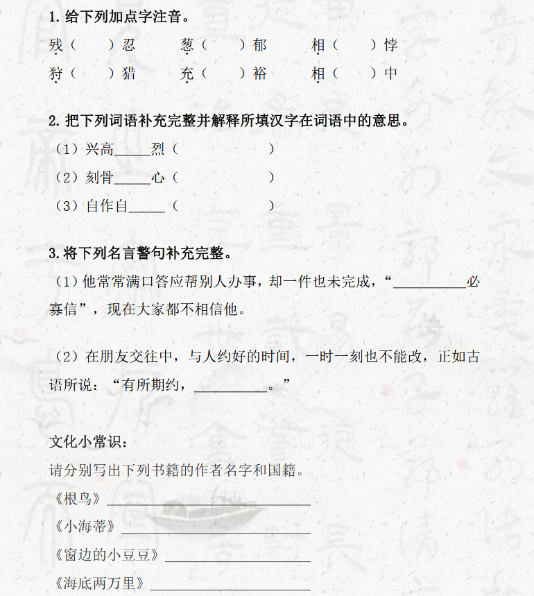 相关推荐 小学1-6年级作文素材大全全国小学升初中语数英三科试题汇总小学1-6年级数学天天练小学1-6年级奥数类型例题讲解整理汇总小学1-6年级奥数练习题整理汇总小学1-6年级奥数知识点汇总小学1-6年级语数英教案汇总小学语数英试题资料大全小学1-6年级语数英期末试题整理汇总小学1-6年级语数英期中试题整理汇总小学1-6年级语数英期中试题整理汇总 点击查看更多