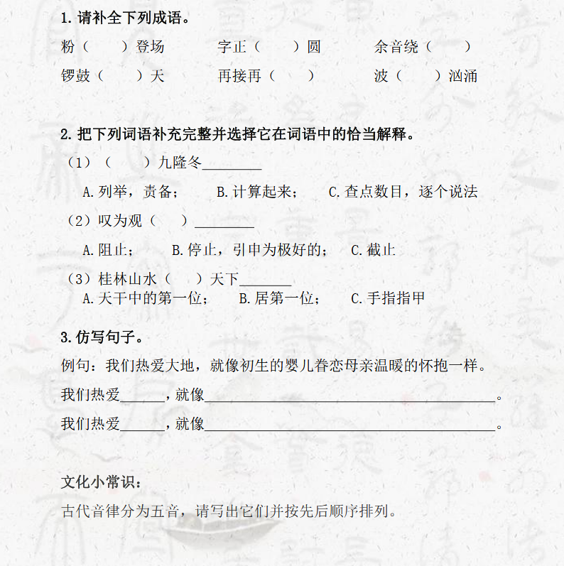 相关推荐 小学1-6年级作文素材大全全国小学升初中语数英三科试题汇总小学1-6年级数学天天练小学1-6年级奥数类型例题讲解整理汇总小学1-6年级奥数练习题整理汇总小学1-6年级奥数知识点汇总小学1-6年级语数英教案汇总小学语数英试题资料大全小学1-6年级语数英期末试题整理汇总小学1-6年级语数英期中试题整理汇总小学1-6年级语数英期中试题整理汇总 点击查看更多
