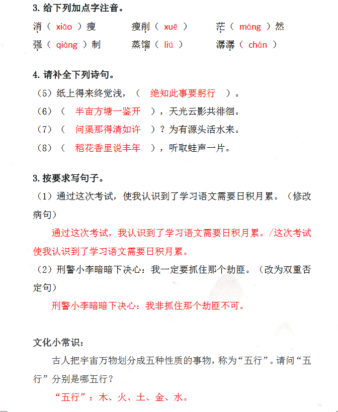 2018上学期上海六年级语文每日一练(七十一)(2)
