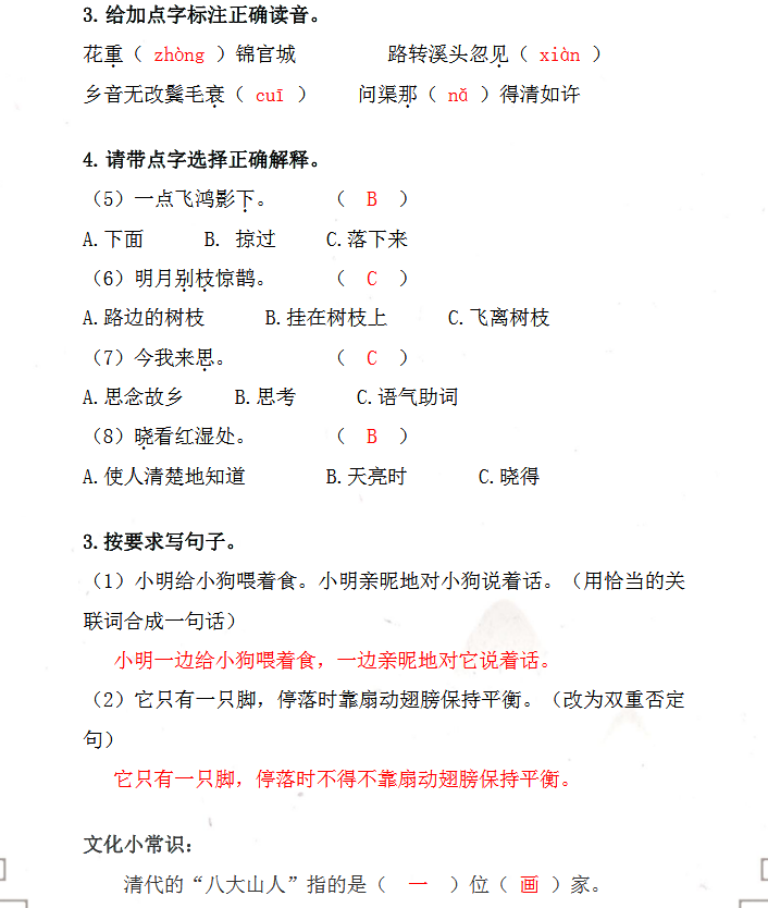 2018上学期上海六年级语文每日一练(七十四)(2)