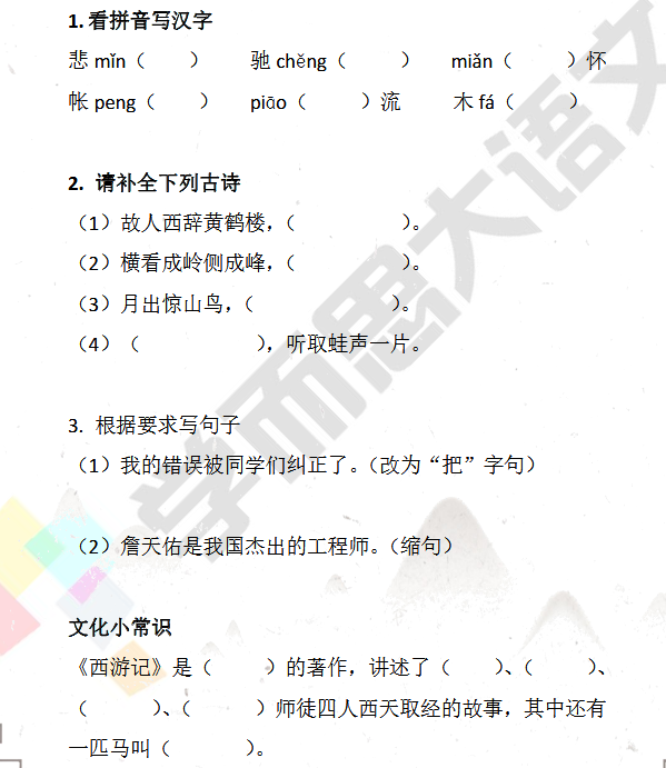 相关推荐 小学1-6年级作文素材大全全国小学升初中语数英三科试题汇总小学1-6年级数学天天练小学1-6年级奥数类型例题讲解整理汇总小学1-6年级奥数练习题整理汇总小学1-6年级奥数知识点汇总小学1-6年级语数英教案汇总小学语数英试题资料大全小学1-6年级语数英期末试题整理汇总小学1-6年级语数英期中试题整理汇总小学1-6年级语数英期中试题整理汇总 点击查看更多