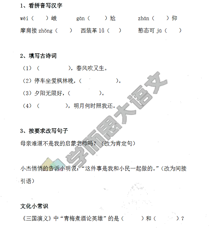 温馨提示:福利来咯!距离数学拿高分,你和孩子只差这一步!→领取福利 相关推荐 小学全科辅导必备宝典【学而思培优APP】小学1-6年级作文素材大全全国小学升初中语数英三科试题汇总小学1-6年级数学天天练小学1-6年级奥数类型例题讲解整理汇总小学1-6年级奥数练习题整理汇总小学1-6年级奥数知识点汇总小学1-6年级语数英教案汇总小学语数英试题资料大全小学1-6年级语数英期末试题整理汇总小学1-6年级语数英期中试题整理汇总小学1-6年级语数英期中试题整理汇总 点击查看更多