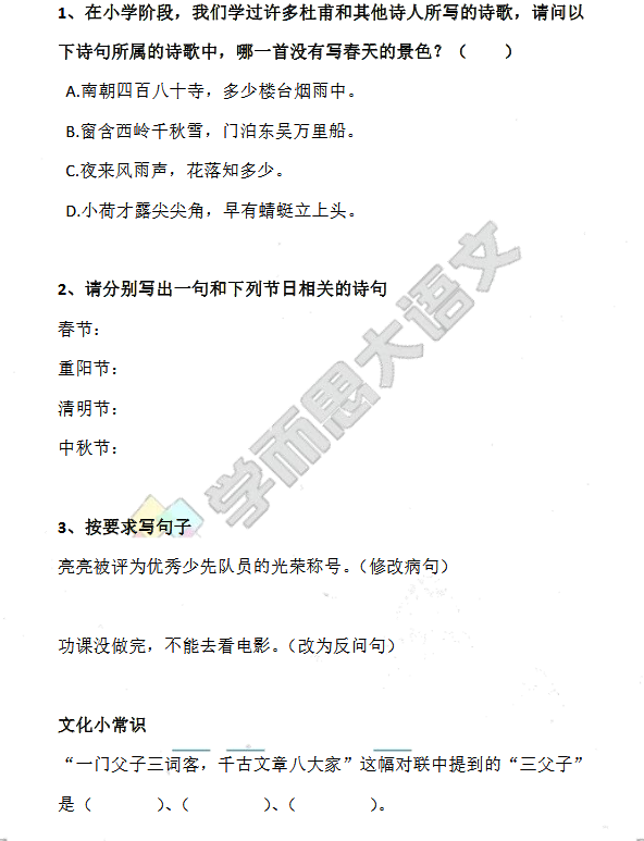 温馨提示:福利来咯!距离数学拿高分,你和孩子只差这一步!→领取福利 相关推荐 小学全科辅导必备宝典【学而思培优APP】小学1-6年级作文素材大全全国小学升初中语数英三科试题汇总小学1-6年级数学天天练小学1-6年级奥数类型例题讲解整理汇总小学1-6年级奥数练习题整理汇总小学1-6年级奥数知识点汇总小学1-6年级语数英教案汇总小学语数英试题资料大全小学1-6年级语数英期末试题整理汇总小学1-6年级语数英期中试题整理汇总小学1-6年级语数英期中试题整理汇总 点击查看更多