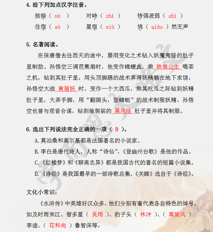 2018上学期上海六年级语文每日一练(九十七)(2)