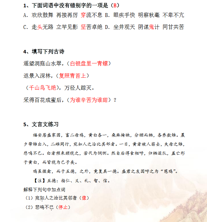 2018上学期上海六年级语文每日一练(一百零一)(2)