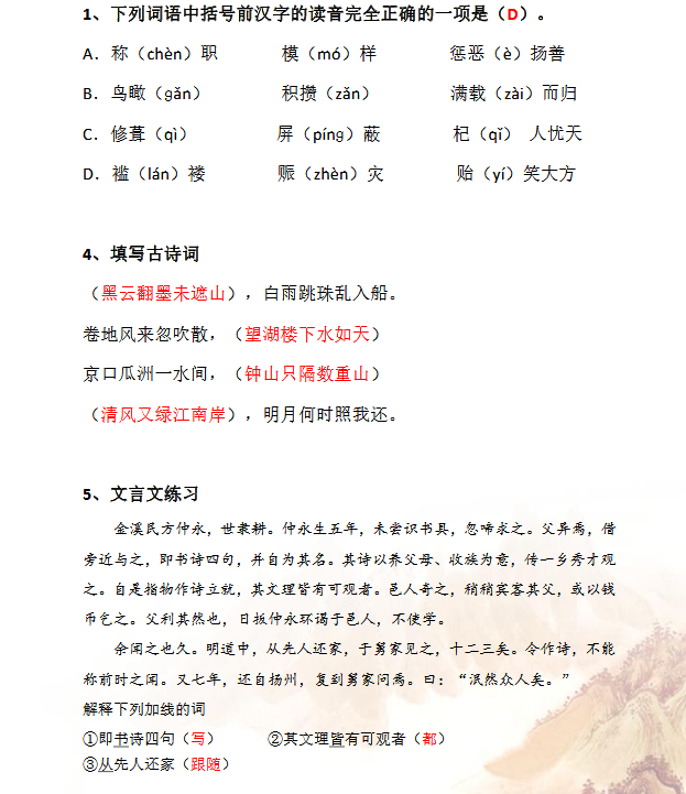 2018上学期上海六年级语文每日一练(一百零二)(2)