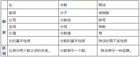 二、比同分数、除法的联系与区别: