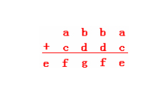 如果百位相加向上进位,则f=2 从而得到b+d=11, C=12221