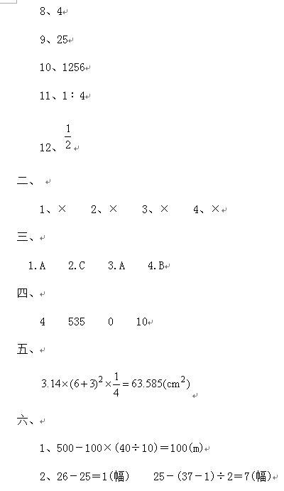 备战小升初:石家庄数学模拟试卷及答案(5)