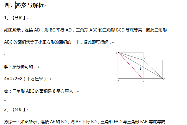 2014石家庄小升初分班考之几何篇:一半模型(2)