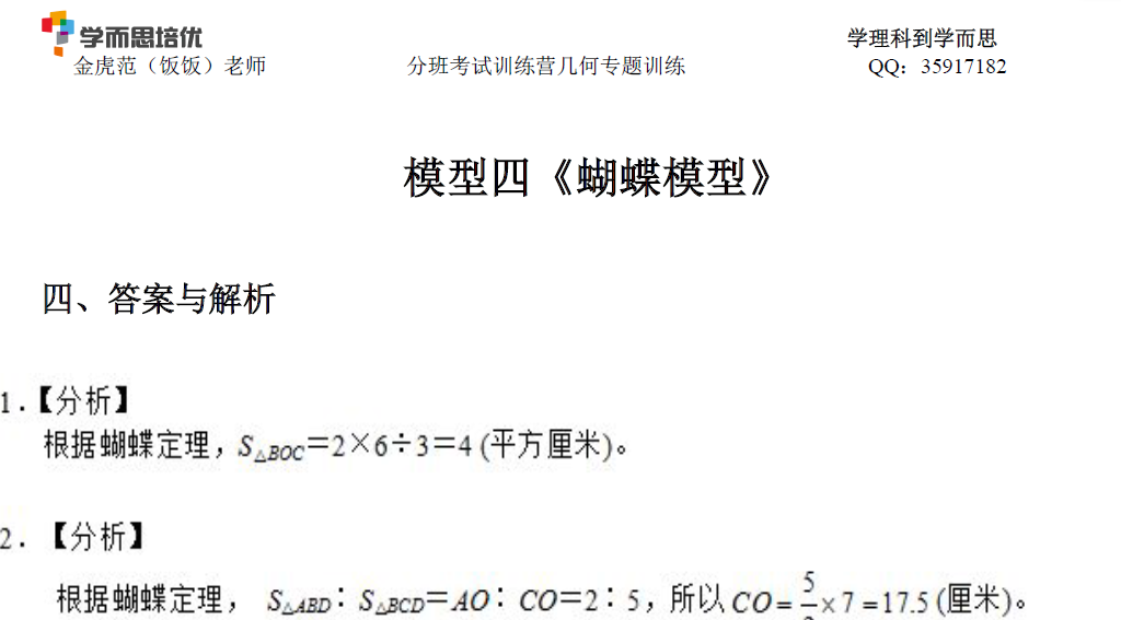 2014石家庄小升初分班考之几何篇:蝴蝶模型(2)