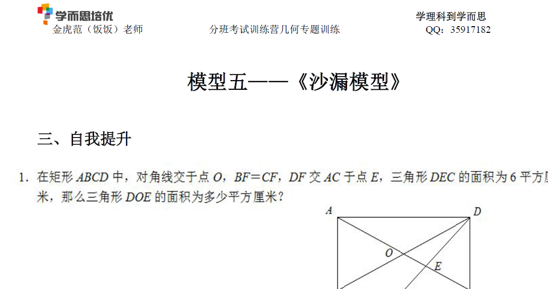 石家庄奥数网 2014石家庄小升初分班考试即将到来,在最后的冲刺阶段,石家庄e度论坛为大家提供了冲刺2014石家庄小升初分班考试之几何篇:沙漏模型(二),大家可以下载下来给孩子进行训练。