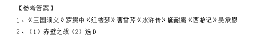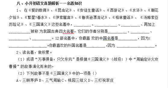2016石家庄小升初语文试题记答案解析:名著知识