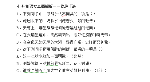 2016石家庄小升初语文试题解析:修辞手法